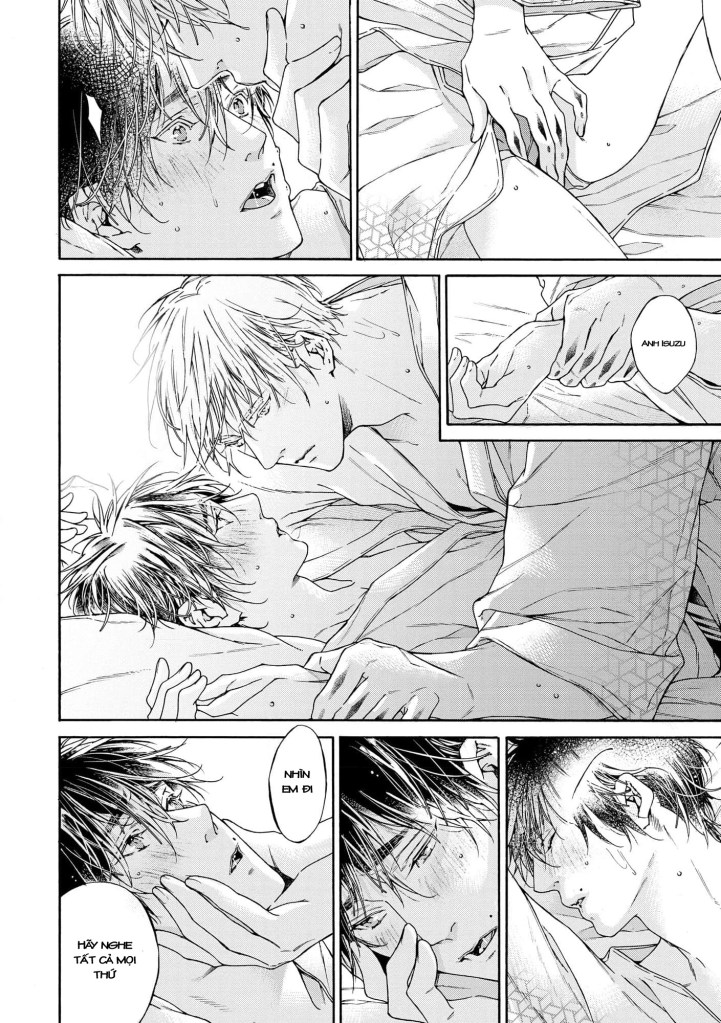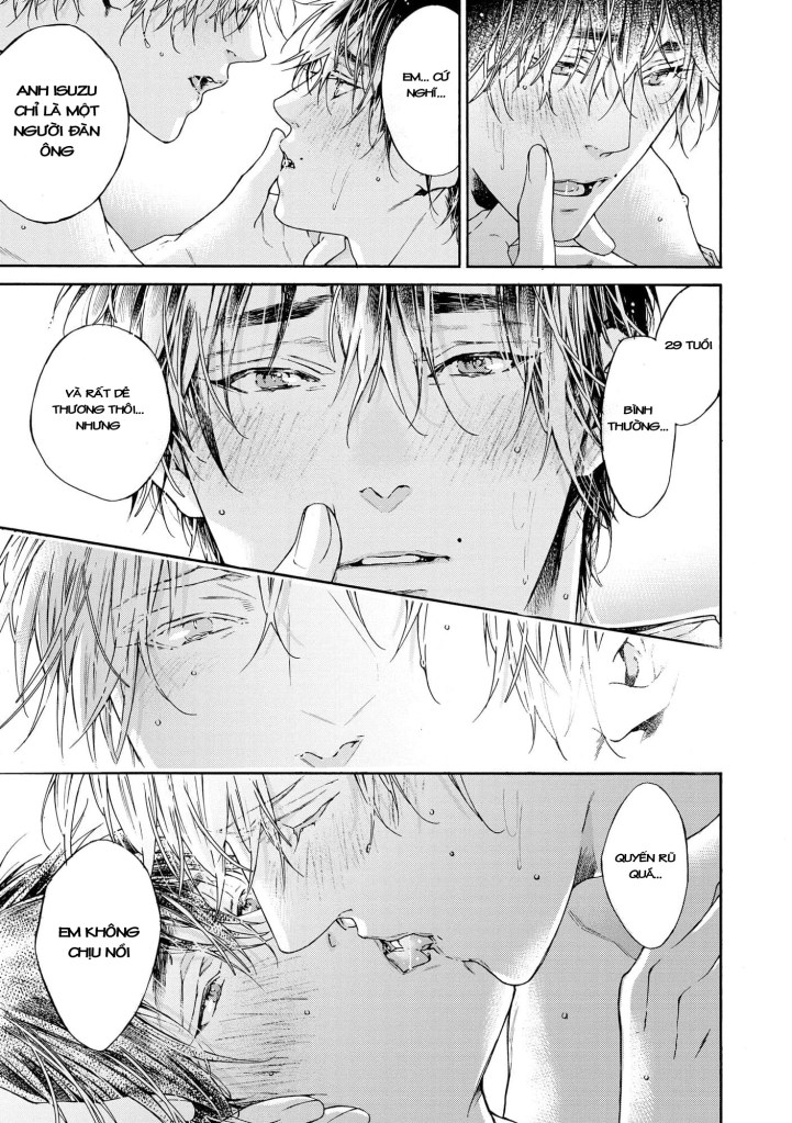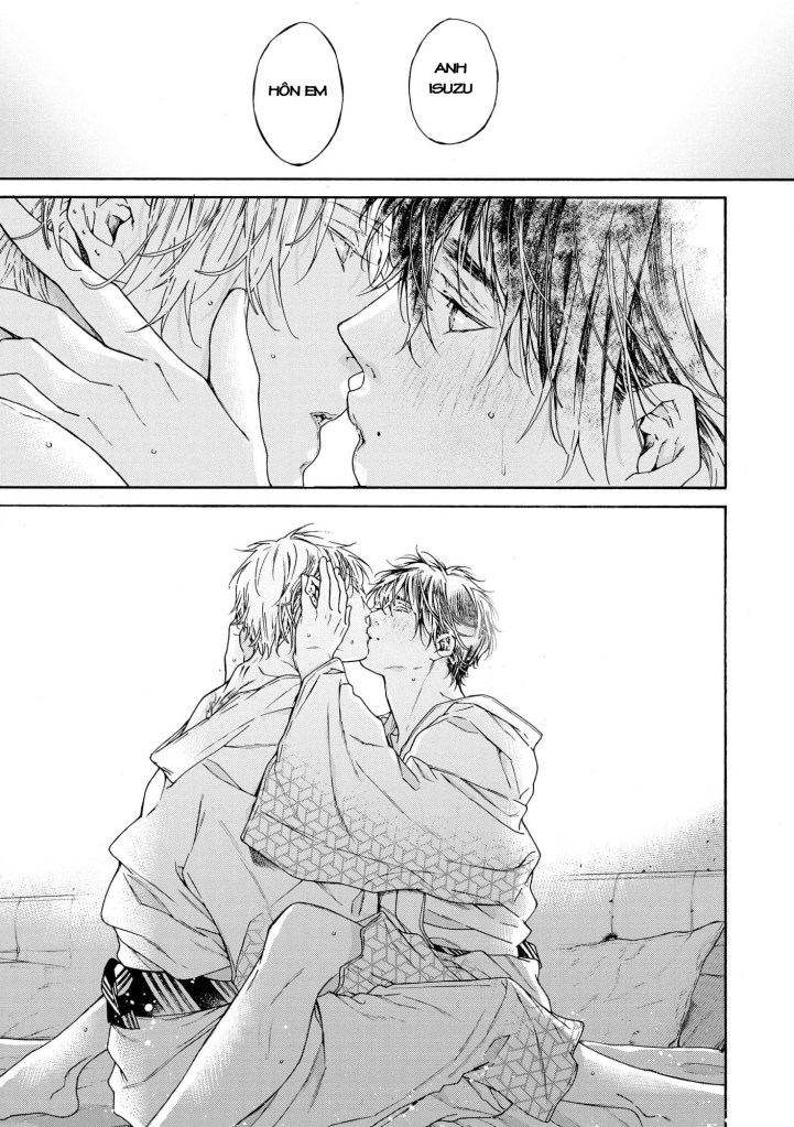 Hồi đọc trên page Dam có hỏi các bạn khiếm thính có phát ra tiếng động không, mình nghĩ vẫn sẽ có đó. ლ(´ ❥ `ლ) Isuzu có Touka trân trọng tới vậy, yêu thương tới vậy, thầm chúc hai anh sẽ có hạnh phúc đến hết cuộc đời này. Mình thích một ý như này, rằng việc quan hệ giữa những người đồng giới không mang hàm ý duy trì nòi giống, mà là những khát khao mãnh liệt về nhau, được chạm vào nhau, yêu nhau trần tục nhất. Cách Touka nâng niu Isuzu, cách Isuzu dựa vào Touka 🥲 ngọt ngào lắm lắm luoonnnnn